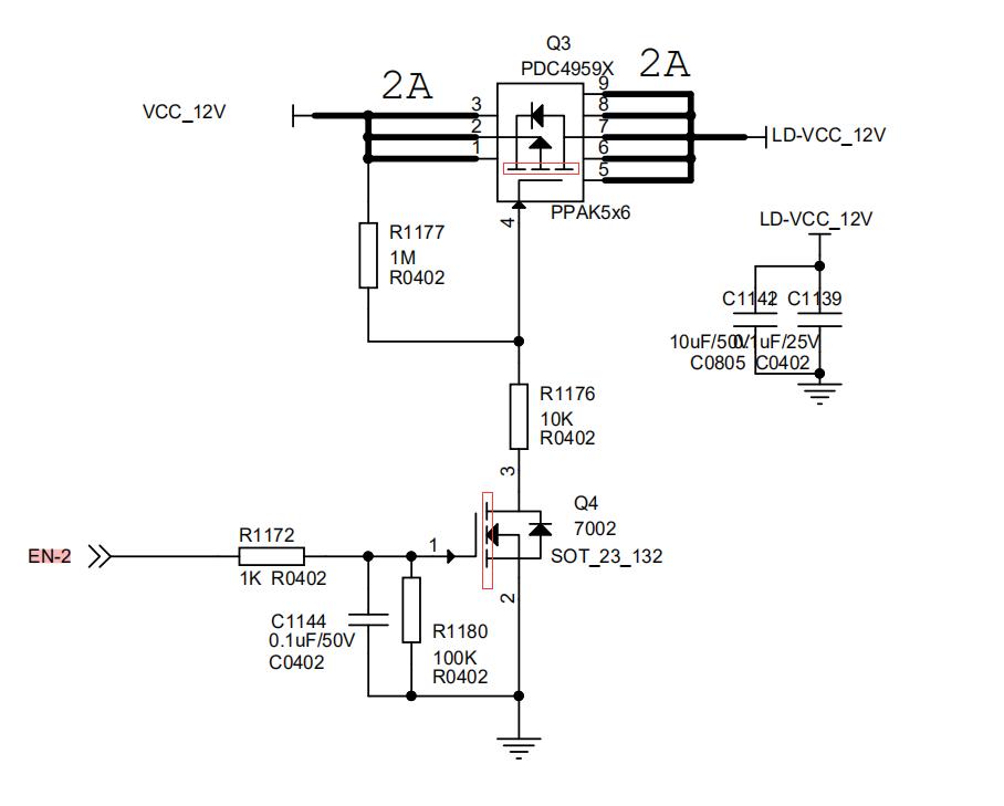 MOS管的辨別判斷小技巧上圖功能簡述當EN-2為高電平的時候,Q4導通->Q3導通,LD-VCC_12V有電當EN-2為低電平的時候,Q4關斷->Q3關斷,LD-VCC_