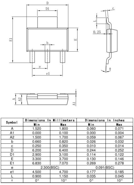 SOT-223封裝,三端穩(wěn)壓管SOT-223封裝尺寸及實物圖SOT-223封裝的三端穩(wěn)壓管型號表烜芯微科技SOT-223封裝的三端穩(wěn)壓管型號表SOT-223封裝 三端